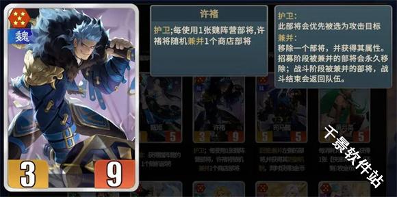 许褚是魏国的中坚力量,后期的各种战术都会围绕许褚来展开。而许褚的特性决定了我们必须投入大量的魏国卡牌来触发许褚的兼并特效。